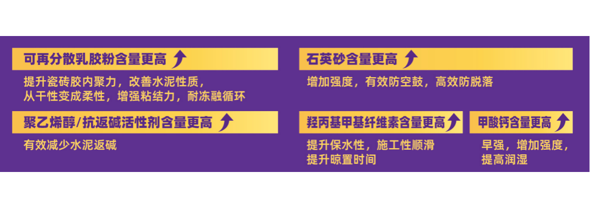 适用于室内外地面、墙面上大部分玻化砖、石材、大板铺贴,能强力粘结低吸水率的瓷砖(≤750*1500规格产品的砖铺贴)。
