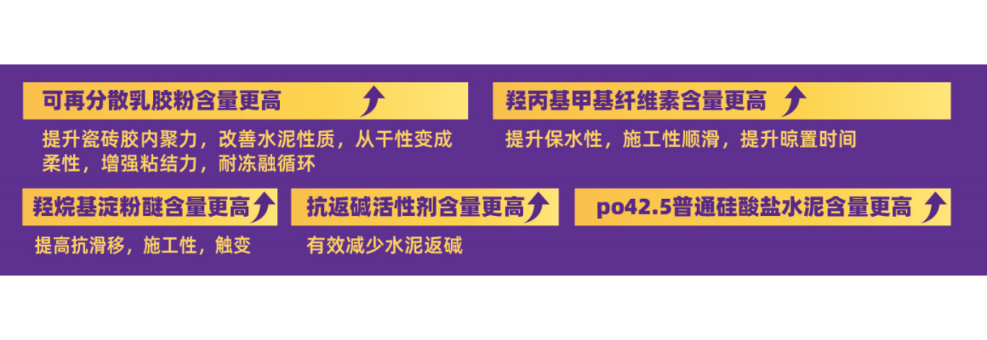 粘结力强,墙地砖均适用,无需浸砖,低收缩
